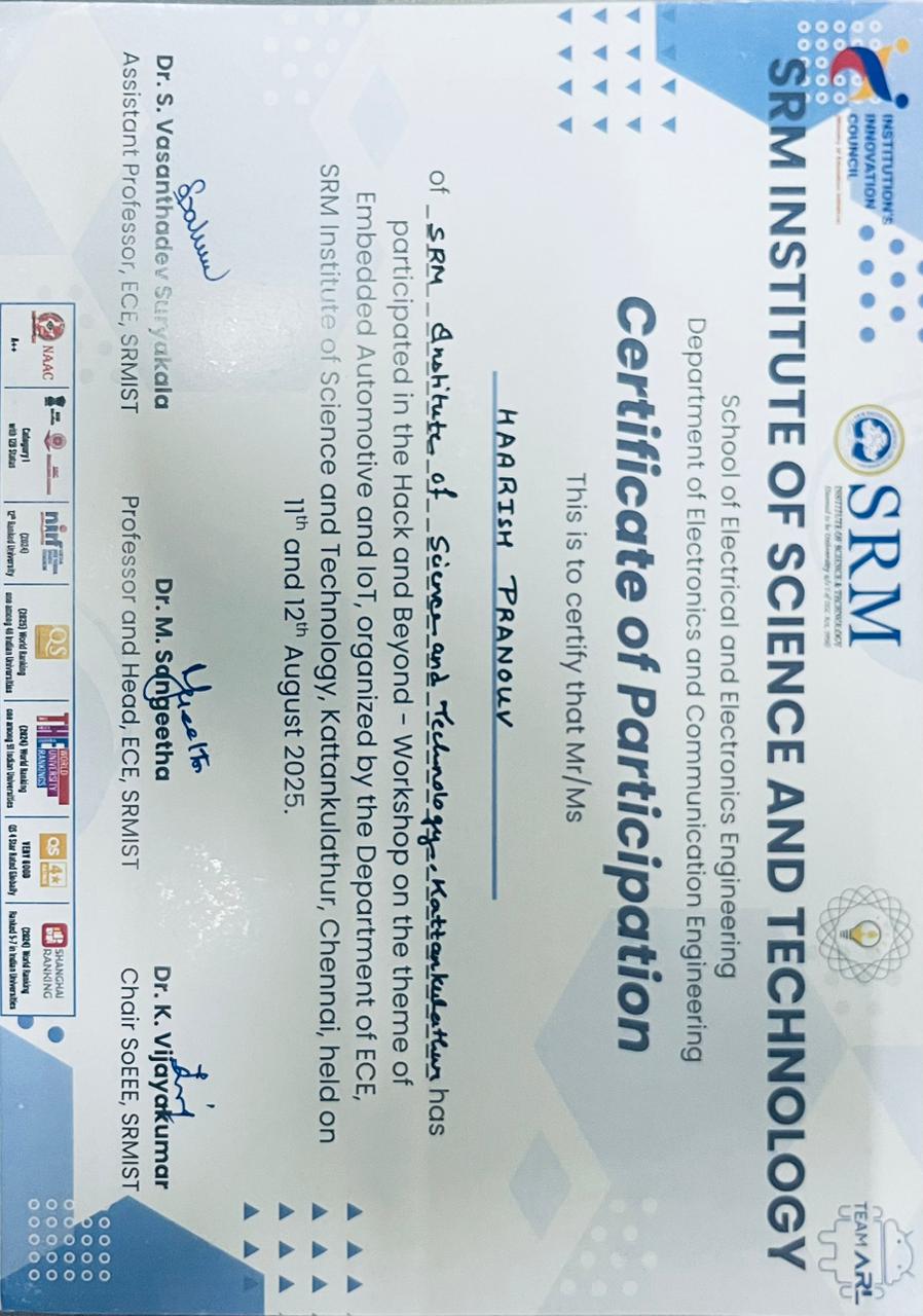 Workshop August 11-12, 2025 Kattankulathur, Chennai Embedded Automotive & IoT